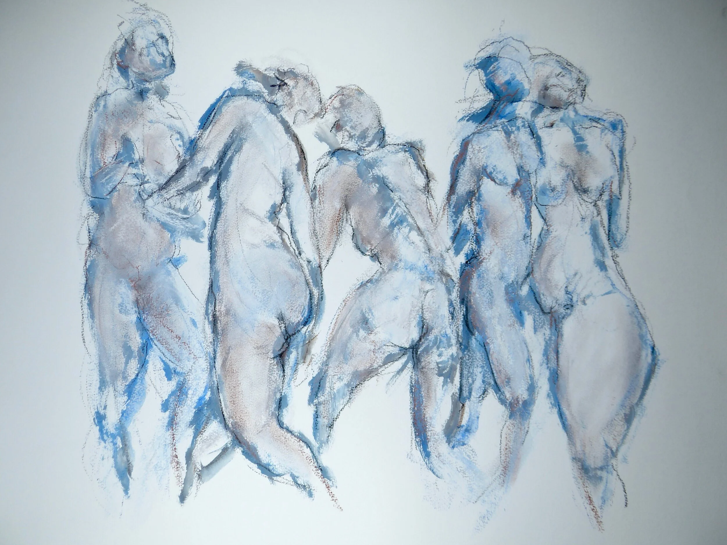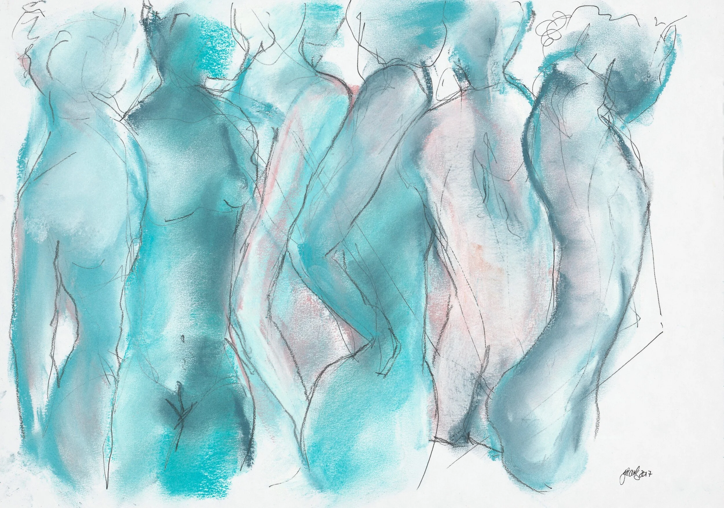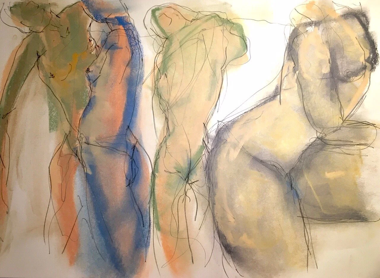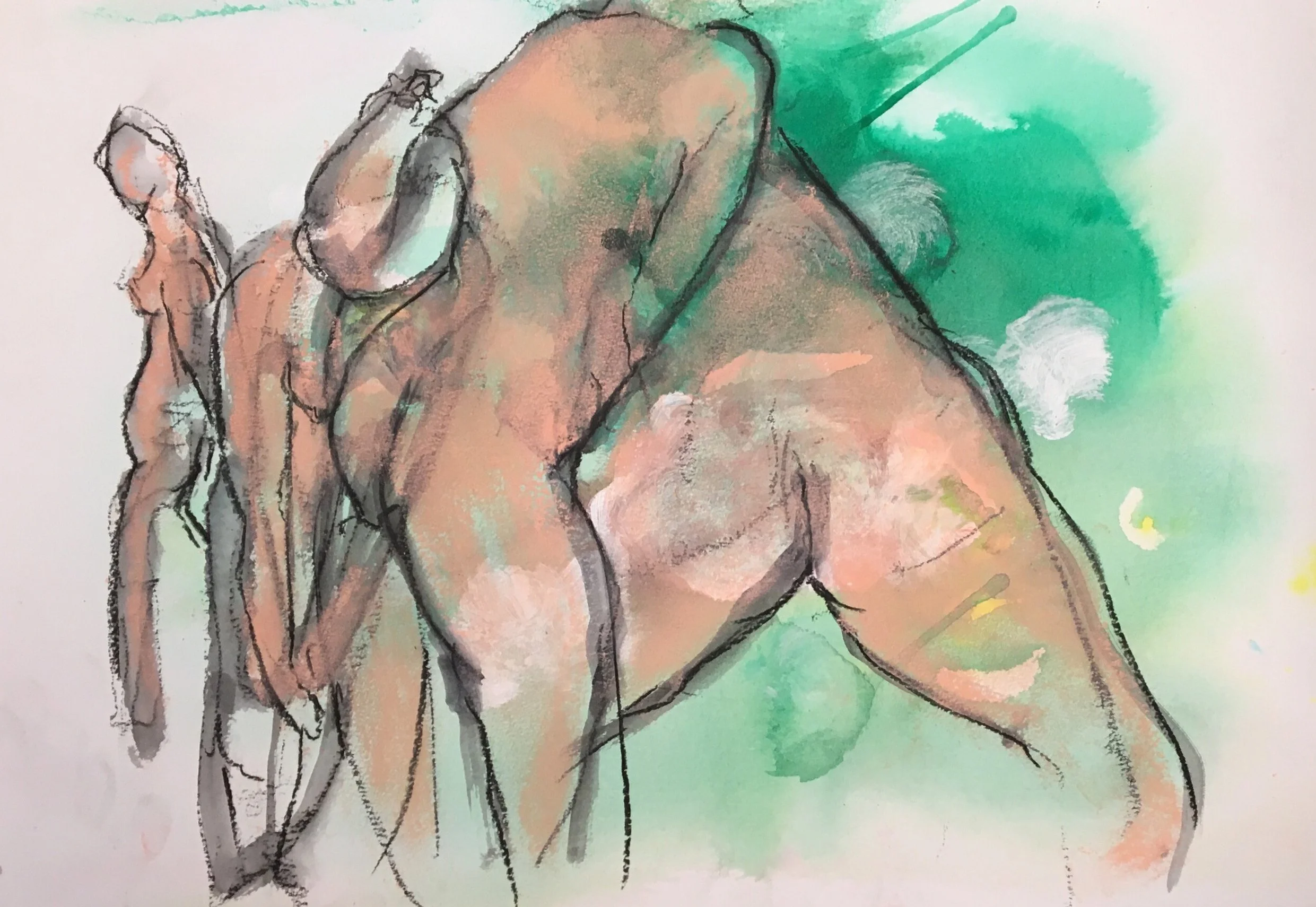 Watercolor, Graf pigment, gauche, charcoal on paper